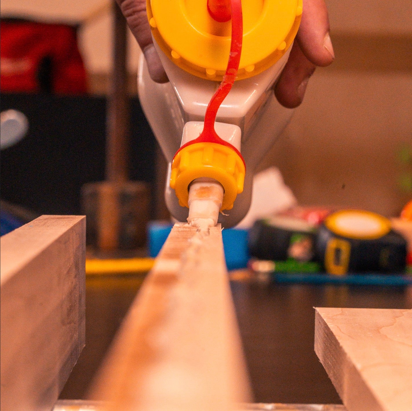The GluBot from FastCap is designed by cabinetmakers and woodworkers. They are easy to fill, they don't drip, and they dispense glue in both horizontal and vertical position it will be the best glue bottle you will ever own.