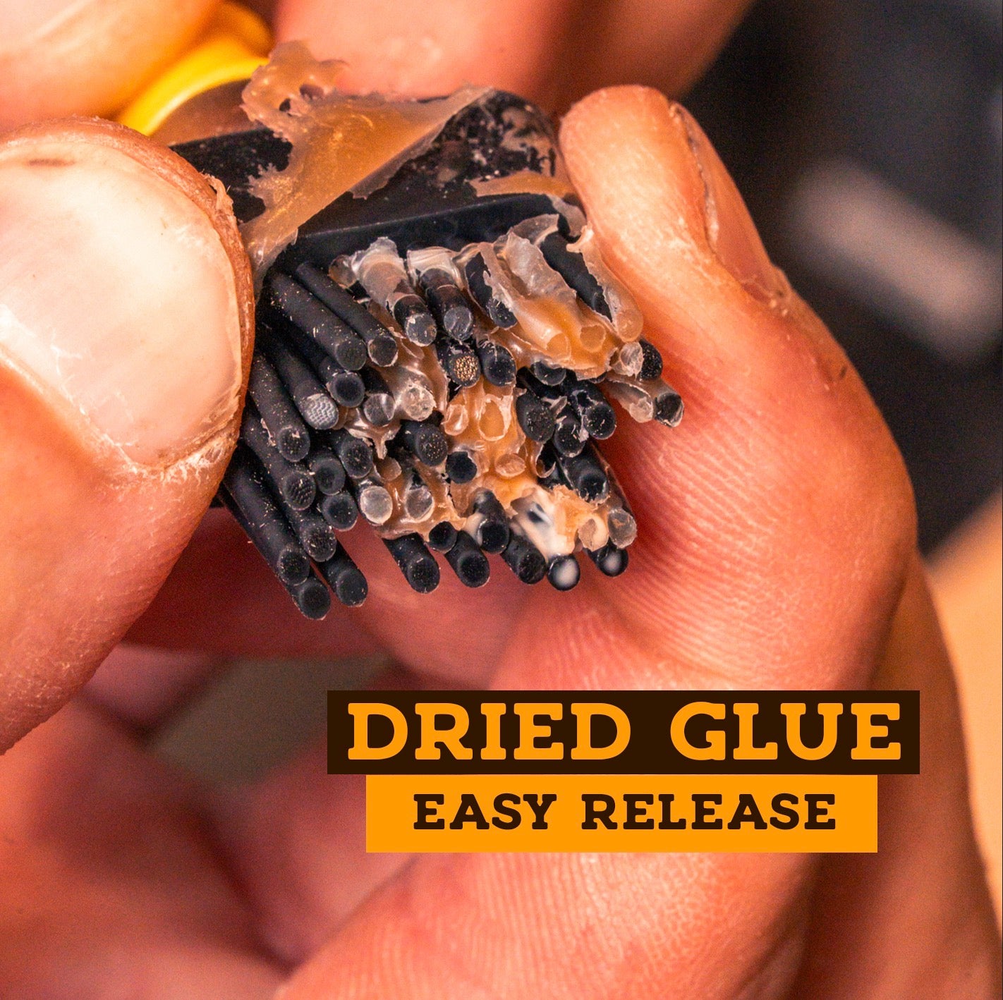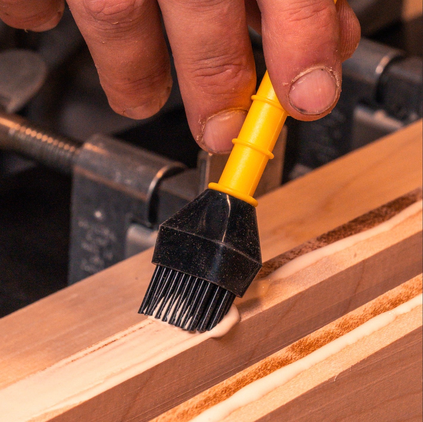 Titebond Titebrush is a durable glue brush with 100% silicone bristles and a plastic handle built to last. It’s ideal for use with most woodworking and polyurethane glues eliminating the need for disposable brushes, fingers and other spreading tools. When finished let glue dry and simply peel or riffle the bristles for easy cleanup. The brush end is ideal for edge and face gluing, as well as general applications. The paddle is the tool to use for finer detail work, such as mortise and tenon, dovetail and finger joints, as well as moldings.